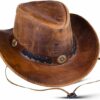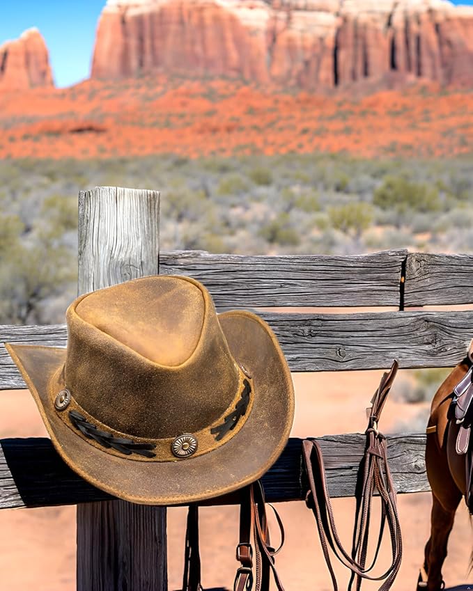 Leather cowboy hats for men are complementary for youth stylish looks and necessary part of cowboy attire for men. These aussie hats for men are associated with farmers, ranchers trucks drivers rugged outdoor and gambler looks. In the recent years these unisex Australian hat for men outback has started to become more common fixture in mainstream fashion and are most commonly searched and called leather hats for women & men both.